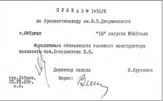 «Работы по созданию танка («Объект 219». Прим. Э.В.) находились под постоянным контролем секретаря ЦК КПССД.Ф. Устинова, в связи с чем никаких задержек в проведении работ не было. УДмитрия Федоровича была настолько твердая уверенность в успешном завершении работ, что, даже не дожидаясь окончания работ, было предусмотрено за 19681974 гг. создать производственные мощности по производству ГТД-1000Т на калужском опытном моторном заводе, ленинградском машиностроительном заводе им. В.Я. Климова и построить завод по серийному производству ГТД в г. Ростове Ярославской области. О широкомасштабном развертывании работ по созданию танков с газотурбинной силовой установкой свидетельствует и тот факт, что их изготовление ежегодно включалось в народно-хозяйственный план «О планах поставок бронетанковой техники» [36].