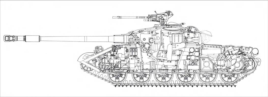 Продольный разрез танка «Объект 140». Вид слева
