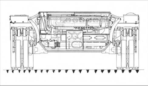 В поперечном сечении корпус танка выглядел в форме «рюмки» [17].