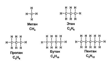 К углеводородным, или нефтяным газам принято относить Метан CH4, Этан C2H6, Пропан C3H8, Бутан C4H10 и Пентан C5H12. Такие углеводородные соединения еще называют парафинами, или предельными углеводородами. Условные схемы нефтяных газов представлены на иллюстрации.