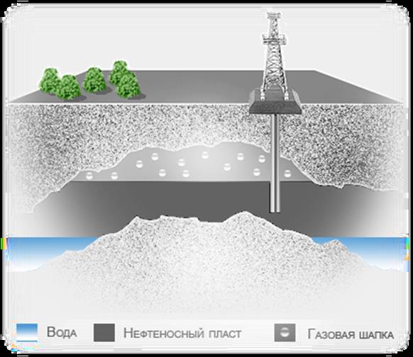 3. Ненасыщенная нефть (в таких структурах нефть, как правило, достаточно вязкая, и недостаточное количество газа не дает возможность сформироваться «газовой шапке»);