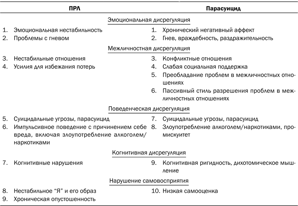 Таблица 1.5. Сравнительные характеристики ПРЛ и парасуицидального поведения