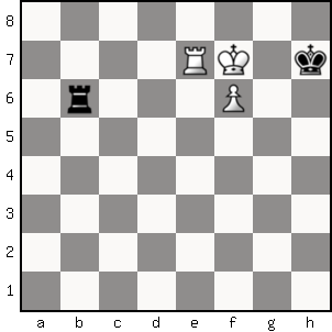 8. Лa8+ 9. Крe7 Ла7+?Решающая ошибка, пятая по счету за девять ходов. После естественного 9. Крg7 впору было соглашаться на ничью. 10. Крf6.Черные сдались.