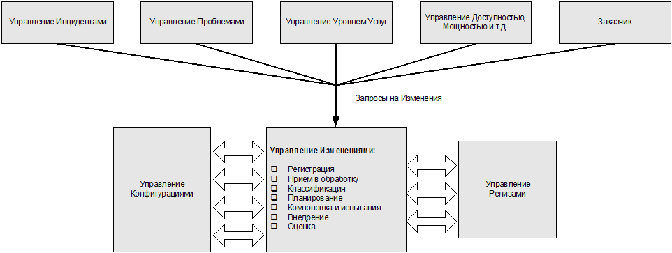 Управление Изменениями имеет описанную ниже взаимосвязь с другими процессами.