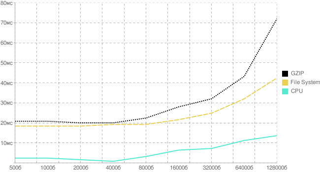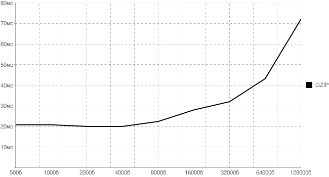 все времена указаны в миллисекундахРис. 2.1 . График издержек на gzip-сжатие от размера файла