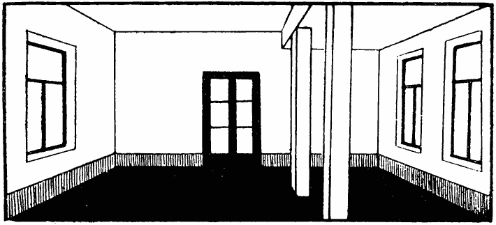 Иллюзию уменьшения или увеличения высоты помещений, сужения или расширения их вызывают также направленные цветом детали архитектуры. Вертикальное направление деталей (например, оконных проемов) делает помещение выше, стройнее и при известных масштабах величественнее. Горизонтальное направление, напротив, как бы расширяет помещение, делает его просторнее (рис. 16).
