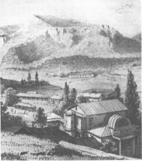 Бесполезно сегодня смотреть от бывшей усадьбы в сторону бывшей крепости. Полуторавековой парк мало чем напоминает прозрачную рощицу, в которой прогуливался автор «Героя нашего времени». Но взглянем на старинный план: из правого флигеля крепость и слободка не могли быть видны их заслоняли здание ресторации и холм, на котором оно стояло. Остается левый флигель, для которого этой помехи не существовало, тот самый дом с портиком, фасад которого выделяется на литографиях. Из окон этого домика виден и балкон Веры.