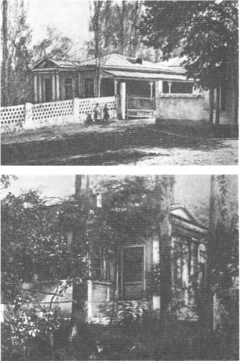 Фантазия одного фотографа? Но, во-первых, фирма Энгеля славилась добросовестностью. А во-вторых... Во-вторых, вслед за этим идет другой снимок с таким же названием, но работы Д. Ермакова известного мастера из Тифлиса . Здесь уже иной ракурс: вид из сада. На холме, за рядом тополей, четко вырисовываются контур фасада, рамы окон, высокие ступени.