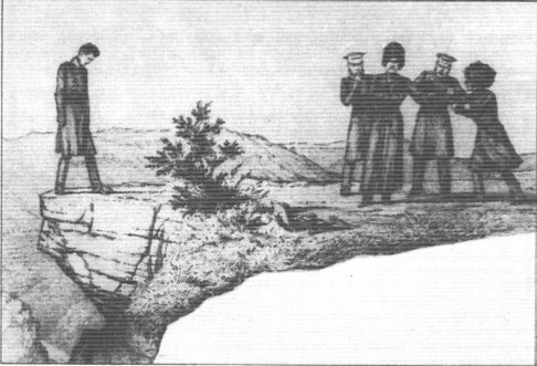 Следует заметить: писатель Д. Л. Мордовцев, впервые посетивший Кисловодск в 1879 году, высказался за путь именно по Березовке. Однако, не давая никаких определенных указаний о местоположении «дуэльного утеса» (быть может, он имел в виду тот же, что и мы) и вкладывая в уста своей привставшей на цыпочки героини восклицание: «Ах, как отсюда хорошо виден Эльбрус!», Мордовцев, к сожалению, выдает желаемое за действительное . Ни с одной скалы над Березовкой нельзя увидеть ни Эльбруса, ни тем более снегового хребта. Ни с одной. Даже если привстать на цыпочки...