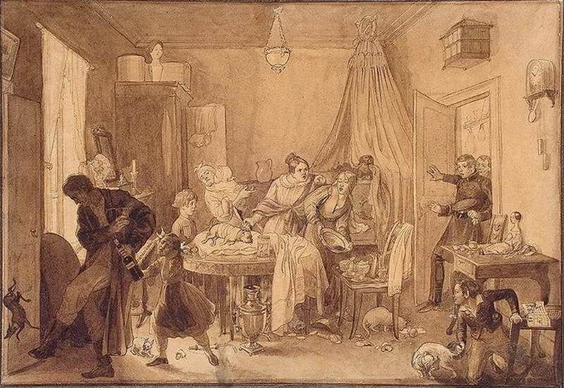 Во второй половине 1840-х годов он мечтал создать серию «Нравственно-критические сцены из обыденной жизни». Художник намеревался издать ее в литографированном виде, но не успел выполнить своего намерения. Серия эта, сохранившаяся в рисунках, очень разнообразна по своему содержанию. Здесь и незлобивые шутки из семейной жизни, и саркастические замечания по поводу общественного быта, и нравоописательные характеристики, и психологические этюды.