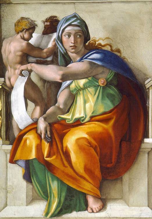 Микеланджело. Сивилла Дельфийская. Фреска. 15081512 гг. Италия, Рим, Сикстинская капелла.