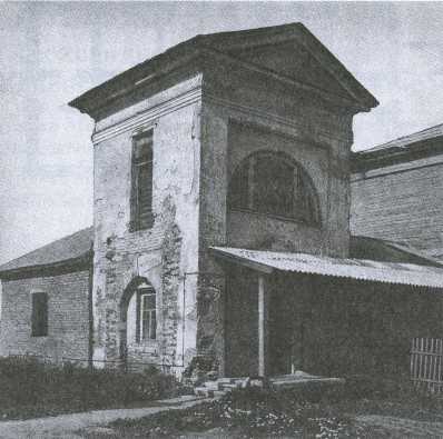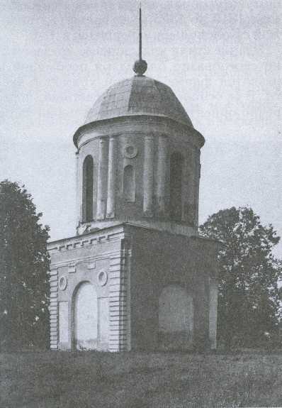 37. КОЛОКОЛЬНЯ ПОКРОВСКОЙ ЦЕРКВИ сооружена из кирпича около 1806 г. в усадьбе гр. А.Р.Чернышевой. Находилась приротондальном храме конца 1770-х гг., который служил прекрасным образцом казаковской школы. Храм вместе с позднейшей трапезной разобран в 1966 г.