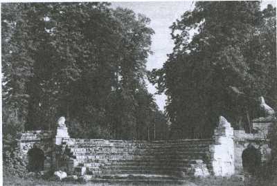 буленгрин с полукруглой каменной лестницей. В цоколе лестницы устроены гроты, парапеты украшены круглой скульптурой. Уцелел насыпной холм катальной горки, композиционно связанный со звездчатой системой аллей обширного пейзажного парка. Зеленые насаждения в последнем пострадали от вырубки, планировка искажена. Нижний парк, находившийся на береговом склоне Пехорки, утрачен.