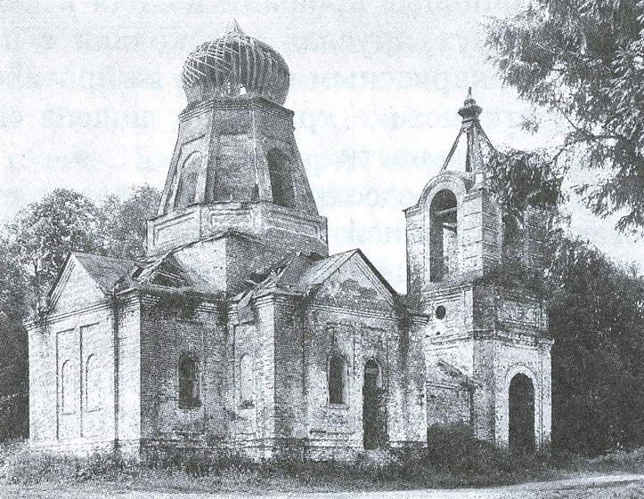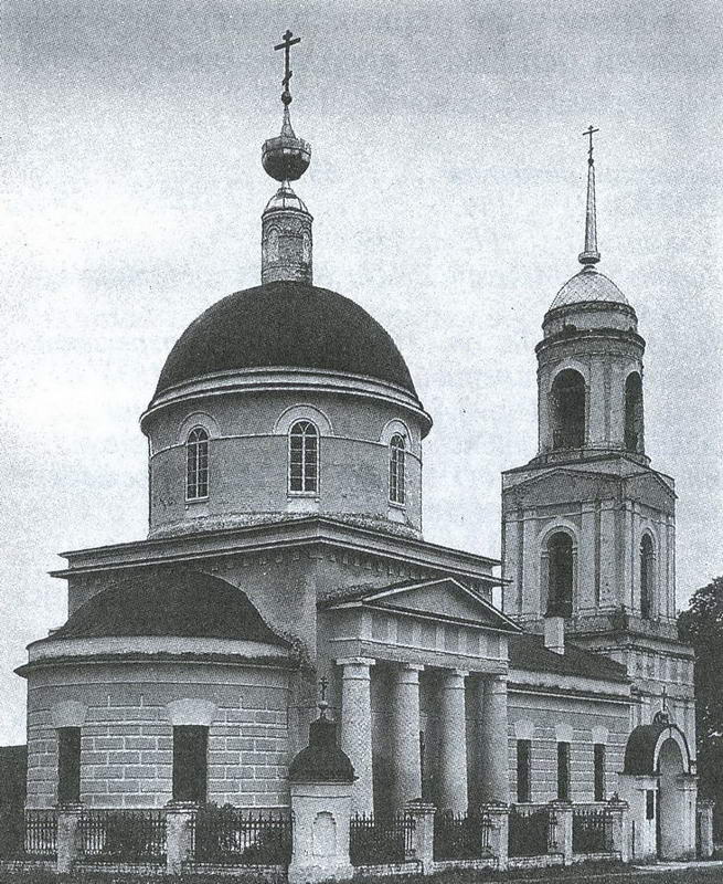 62. ЦЕРКОВЬ НИКОЛЬСКАЯ, кирпичная, выстроена в 1844 г. на средства прихожан. От здания стиля классицизма остался лишь основной храмовый объем в виде высокого двусветного четверика, несущего купольную ротонду. Апсида, двухпридельная, очевидно, двустолпная трапезная и колокольня разобраны. Храм украшали портики с фронтонами, ограниченные квадратными столбами. В обработке световой ротонды креповками по странам света и ложными люкарнами ощутимы традиции казаковской школы. При несомненных достоинствах архитектуры памятник характеризует приверженность к устоявшимся художественным канонам.