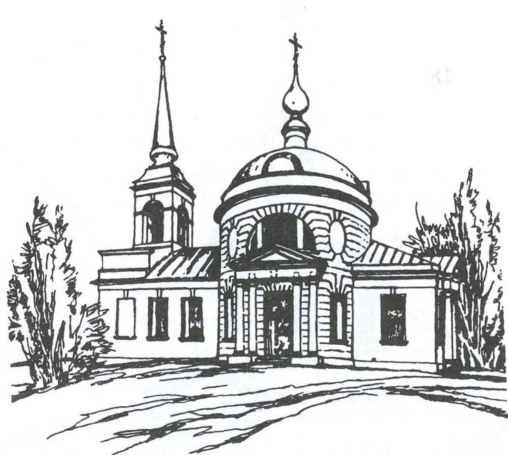 61. ЦЕРКОВЬ ПОКРОВСКАЯ, кирпичная с белокаменными деталями, сооружена по заказу Балашова в 1811 г. Небольшие размеры, своеобразие типологии и высокие художественные достоинства позволяют считать ее усадебной.