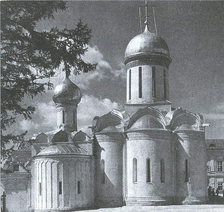 Белокаменный собор, один из важнейших памятников раннемосковского зодчества, принадлежит к характерному для эпохи типу крестовокупольных храмов, одноглавых, четырехсто лпных и трехапсидных,