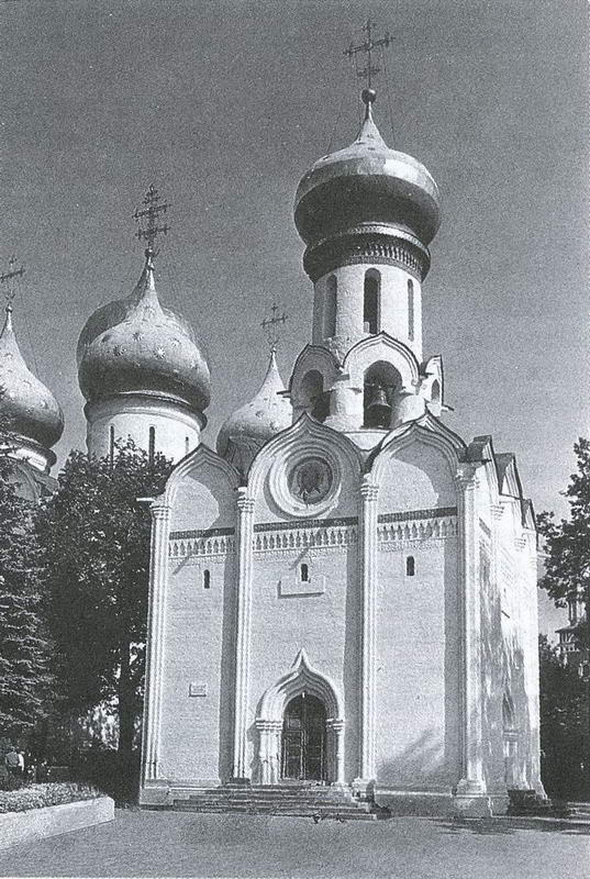 Успенский собор возведен в 15591585 гг. по повелению царя Ивана Грозного. В середине XVIII в. изменен его верх: покрытие по закомарам сменила четырехскатная кровля, увеличена высота центрального барабана, сделаны луковичные главы. До 1780 г. собор имел западную, крытую сводами паперть, где был погребен царь Борис Годунов с семьей. После замены паперти существующим крыльцом над гробницами сооружена каменная