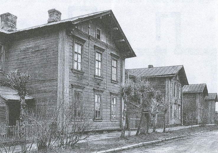 Комплекс состоит из четырех однотипных двухэтажных деревянных домов с приусадебными участками. Поставленные в ряд торцами вдоль красной линии улицы небольшие обшитые тесом здания рассчитаны на четыре семьи. Двухкомнатные квартиры с двусторонним расположением комнат относительно прихожей отвечали установленным санитарным нормам, удобны, хорошо инсолированы. Наружная архитектура домов проста, но достаточно выразительна благодаря усложению объема симметричными боковыми пристройками для холодных сеней и крылец. Равноценность квартир внешне выражена одинаковым размером окон в обоих этажах, их общим оформлением несложными резными наличниками. Резьба, покрывающая также карниз в основании фронтона, украшает лишь главный фасад. Тыльная сторона зданий решена намного скромнее.