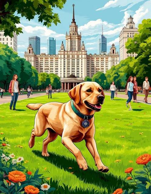 Бег, как и прочие движения, были ещё по щенячьи порывисты, немного неуклюжи собака то застывала на месте, то вдруг кидалась к очередной группе людей, имевших неосторожность обратить на неё внимание. Таких на лужайке перед Главным Зданием МГУ хватало, несмотря на то, что учебный год ещё не начался жители близлежащих кварталов ловили тёплые летние деньки, загорая на травке. Рядом с ними устраивались абитуриенты, у которых в разгаре были вступительные экзамены, и требовалось прийти в себя на свежем воздухе, под ласковыми лучами летнего солнышка