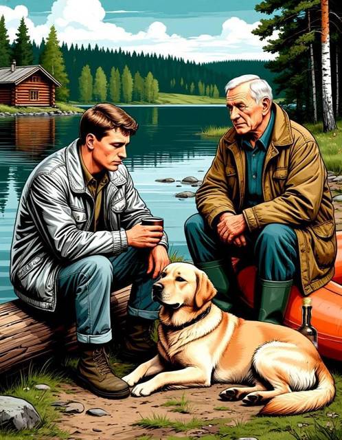 Мы сидели на бревне толстом, сосновом, аккуратно отпиленном с обеих сторон. То есть это я сидел на древне И. О. О. устроился напротив, на борту надувной лодки совсем новой, с баллонами из ярко-оранжевого эластичного пластика и жёстким днищем. Бэлька улеглась у нас в ногах мокрая, вволю наплававшаяся в озерке, она озиралась по сторонам, то и дело задирала нос, принюхиваясь к озёрным запахам, и время от времени косила ореховым глазом на меня «как там, хозяин, ещё не время покормить маленькую собаченьку»?