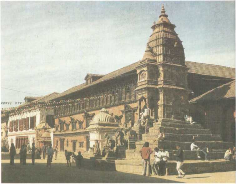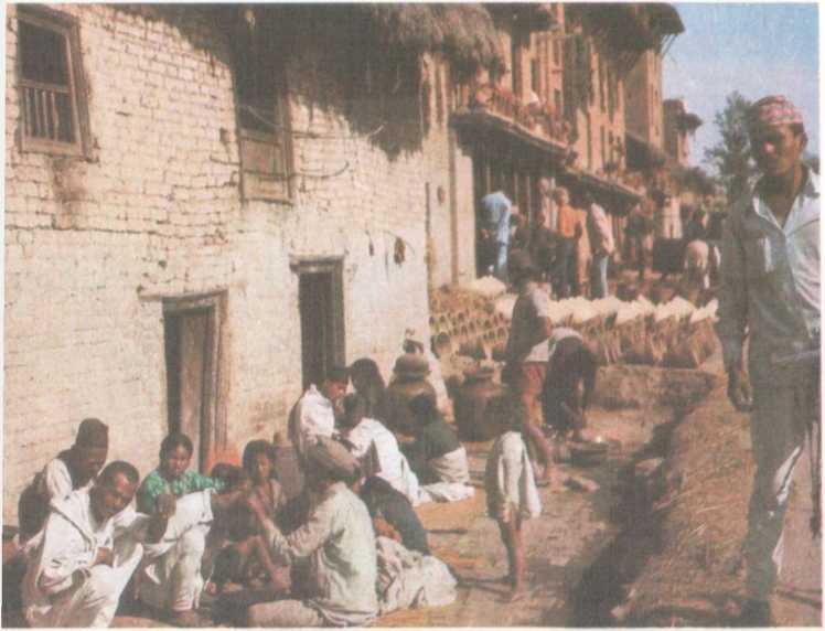 На одной из улиц непальской деревушки. На заднем плане виднеется гончарная мастерская