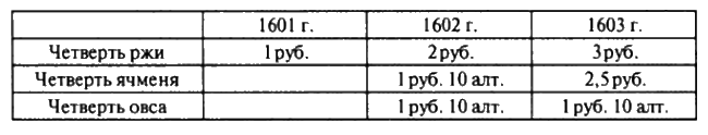 По свидетельству Пискаревского летописца, помещенному под 7109 (1601) г., когда «учинился глад хлебной» и людям приходилось покупать «кадь ржи в четыре рубли и выше на Москве и по всем градом», царь Борис Годунов устроил массовые раздачи хлеба и «велел давати милостыню всяким требующим, и на всякой день даваше по триста и по четыреста Рублев, и выше».