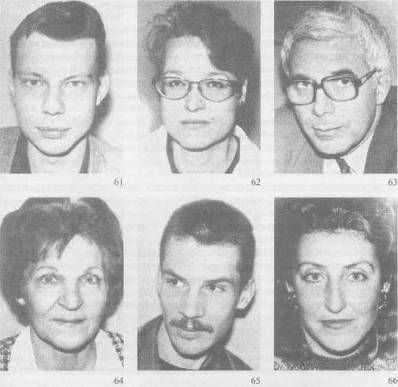 Человек системы и порядка, ЛСИ и внешне воплощает эту установку. Самые симметричные лица мы встречаем именно у людей этого психотипа. Для ЛСИ характерно спокойное, бесстрастное лицо, часто имеющее как бы строгую геометрическую форму. Это могут быть и лица, как будто заключенные между параллельными линиями (61, 62), либо треугольные (64, 66). Так или иначе, все они имеют правильные геометрические очертания, среди них, по крайней мере автору, очень редко встречались лица асимметричные.