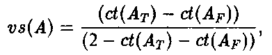 Самый очевидный способ принять ct(A t) - ct(A F) за меру правдоподобности A. Однако по причинам, которые я здесь не буду обсуждать, мне кажется несколько более предпочтительным определить правдоподобность vs (A) как разность, умноженную на некий нормализующий множитель, предпочтительно следующий: