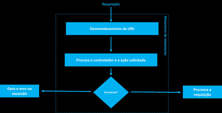 A figura 2.3 apresenta um esquema funcional que ilustra (de forma simplificada) o mecanismo de roteamento implementado pelo ASP.NET MVC.
