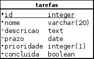 bancos de dados. Já que não precisamos de nomes muito grandes para as tarefas, 20