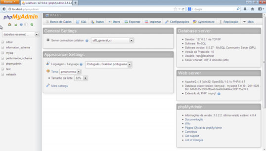 Para acessar PHPMyAdmin utilize o endereço http://localhost/phpmyadmin.