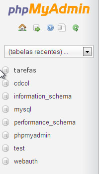 Figura 6.5: Veja o banco tarefas na lista dos bancos
