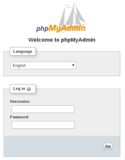 Nesta página você pode escolher o idioma para usar o PHPMyAdmin. Acesse