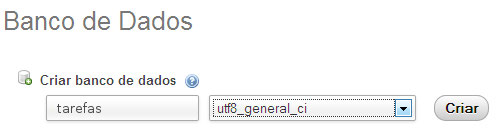 nome do banco de dados, que será tarefas, na caixa de entrada Criar banco de da-