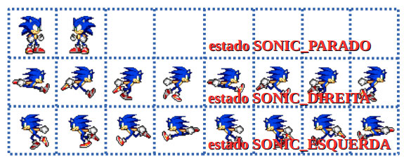 cada linha da spritesheet corresponderá a um estado do sprite (ex.: