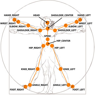 O esqueleto do usuário conta com vinte articulações (frequentemente chamadas