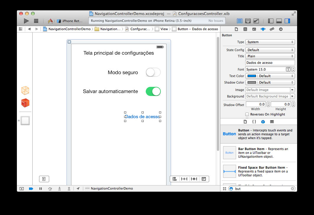 Execute o aplicativo ( Command + R) e navegue entre os controladores, e veja
