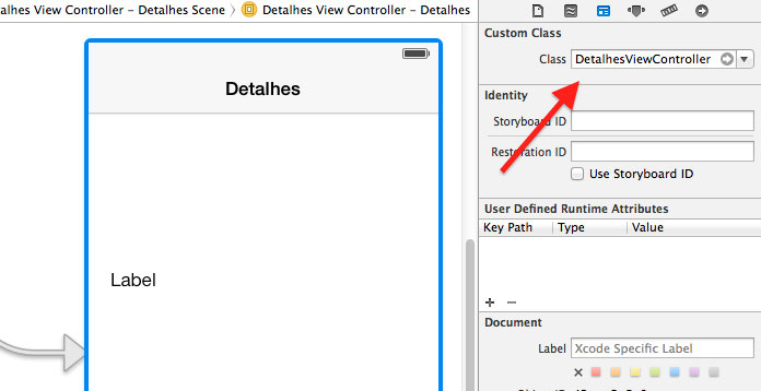 associe-o à tela de detalhes através do campo Custom Class no Identity Inspector.