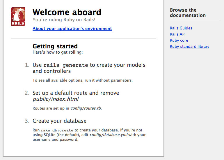 preparada pela equipe do Ruby on Rails. Nessa página, há alguns passos, como usar