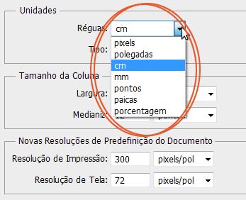 Em Unidades, é possível escolher em qual medida as réguas serão pautadas.