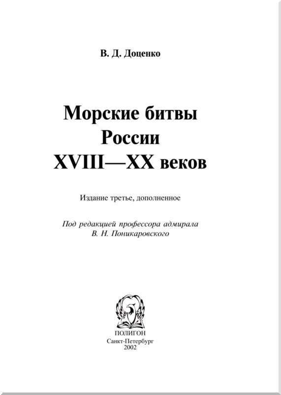 Виталий Доценко МОРСКИЕ БИТВЫ РОССИИ XVIIIXX вв