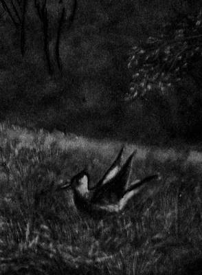 Исполню-ка я «побегуши», может, это его охладит? Клюв вперёд, крылья чуть вниз, а хвост круто вверх. И быстрой перебежкой к нему. Ого и у него «побегуши»! Тогда испытаем «подскок с повертушей». Подскок, переворот через плечо клювом к хвосту и громкое злое «чув-шшиии!».