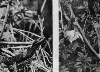 На кусте отчаянно металась и кричала весничка. А под кустом ползала, извиваясь, гадюка. Глазки у гадюки посверкивали как стёклышки, язычок трепетал у стиснутых губ сердито и раздражённо.