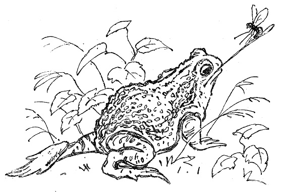 Когда к неподвижно сидящей жабке подлетала и садилась мушка, язык молниеносно выскакивал изо рта, шлёпался