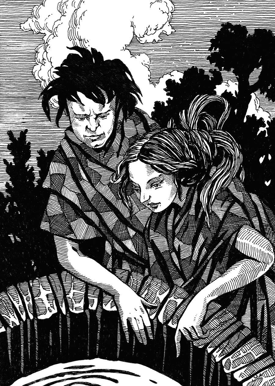 Идея Стелли понравилась. Мы подбежали к колодцу, и я забрался на лежавший рядом с ним камень, став с девочкой одного роста. Сдвинув крышку, мы замерли, с тревогой заглядывая в глубину и вдыхая запах холодной воды и мокрого камня. Колодец был почти полон, и из его глубины смотрели наши испуганные лица.