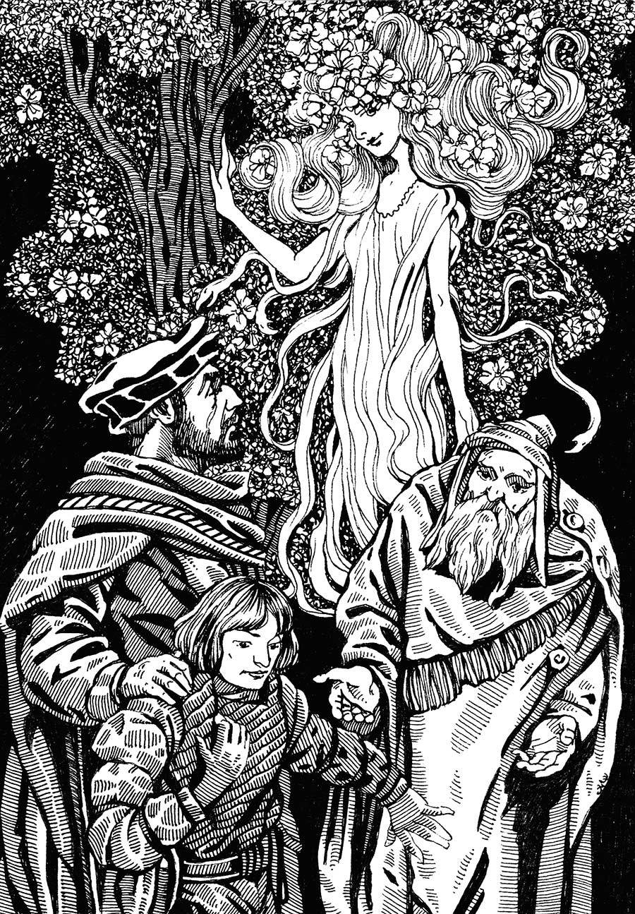 Над деревом задрожал воздух, и из этого марева возник силуэт женщины, хрупкой и прекрасной, я задохнулся от этого совершенства. Подобно облаку паря над землёй, она была самым чудесным из всего, что я видел на тот момент. Но эту красоту нельзя было любить. Ей можно было только поклоняться.