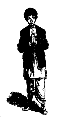 «І чого вона рюмсає? дивувався Бхомбол. Невже тому, що їй жаль розлучатися з батьківською домівкою?..» Сам Бхомбол ніколи не сумує з такого приводу; навпаки, він радіє, коли йому щастить побувати в іншому місці. Тим-то він і втік із дому.