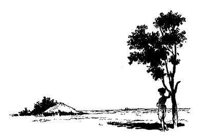 Бхомбол вийшов на вулицю і став під деревом. Звідси було видно дуже далеко. Ліворуч стояла невелика хатина, за нею поле, а за полем шлях. Цим шляхом Бхомбол прийшов сюди. За шляхом розлягалися рисові плантації. Плантація за плантацією ішли в далину неозорими зеленими хвилями і закінчувались десь на видноколі, там, де зелений колір нив зливався з блакиттю туману. Бхомболові здавалося, що там, за цими рисовими полями, нема нічого: ні світу, ні неба Хто зна, що там далі! Над полями зграйками пурхали горобці.