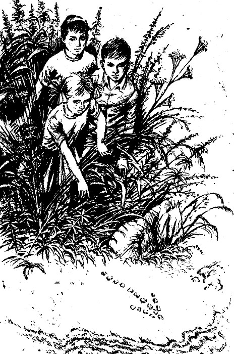 Тишина на острове, никто не откликается. Устали пионеры кричать, а Костя и Павлик даже голоса не подали.