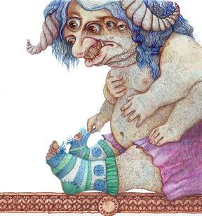 Царь Соломон был совершенно выдающимся царём. Мудрым, сильным, храбрым и так далее. Пред ним трепетали вражеские трепетатели; по его приказу возводились великие постройки; его чары смиряли мерзких матёрых демонов; его мудрости приезжали учиться со всех концов земли. Но при всём этом царь Соломон был всего лишь человеком. Точнее всего лишь мужчиной. А ещё точнее еврейским мужчиной. А еврейский мужчина, заболев чем бы то ни было (не говоря уже о такой досадной пакости, как ангина), немедленно перестаёт быть мудрым, сильным и храбрым. А становится вместо этого испуганным, растерянным и очень несчастным, будь он хоть царём над всеми царями. И царь Соломон, обнаружив у себя ангину, немедленно сделался ужасно, ужасно несчастным. Тем более, что замечательные ханукальные пончики оказалось больно глотать, и царь а) не получил от пончиков никакого удовольствия, б) остался голодным. Тут кто угодно оказался бы ужасно, ужасно несчастным.